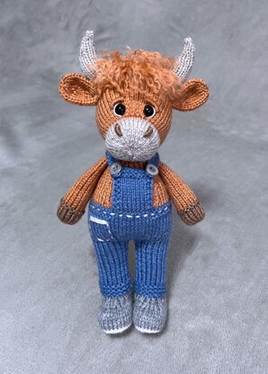 This is a knitting pattern for a stuffed toy highland cow called Torran. The toy is knitted on 2 needles and then sewn.