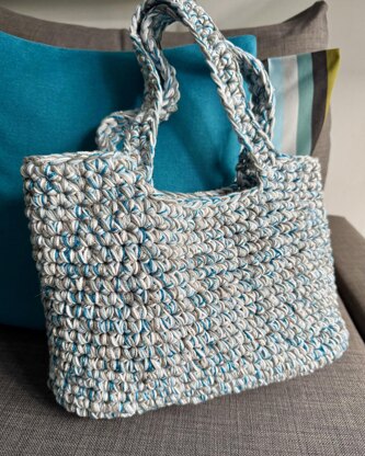 Every tote is a unique piece and the multi-strand creates a beautiful look. It's worked from the bottom up, in the round, and it's seamless, which is always a plus!