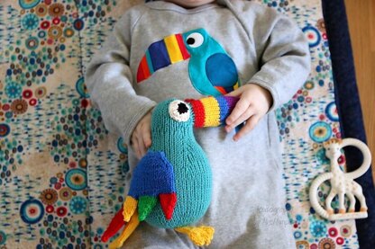Er ist ein ganz schönes Großmaul, dieser Tukan, aber wer kann ihm böse sein? Er hat einfach zu viel Charme. Er hat die perfekte Größe, um der beste Freund jeden Kindes zu werden und wird mit etwas Knisterfolie in den Flügeln und einer Rassel im Bauch zum schönsten Babyspielzeug.