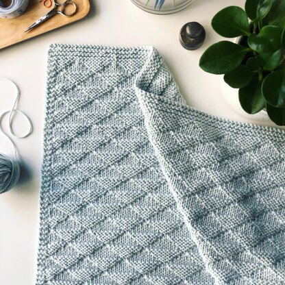 Blanket knit flat, in one piece, back and forth on circular knitting needles in order to accommodate large number of stitches.