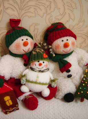 Toy knaitting patterns Christmas- Knit Mom and dad are snowmens with a baby PDF.