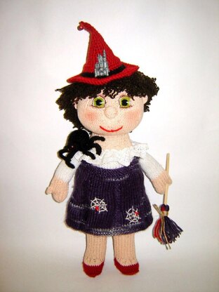 Toy knaitting patterns - Knit a Witch with spider, halloween doll one of a kind