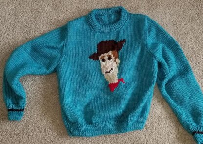 Toy Story popular figures. The Kids love this sweater. It is fun to make. The charts are easy to follow.