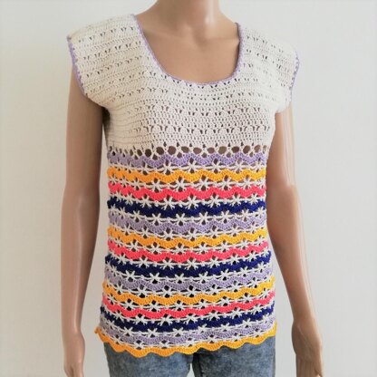 This comfortable lace crochet top in bold colors of the sun, sand and sea celebrates the summer, reminding on the long, warm sunny days on the beach.