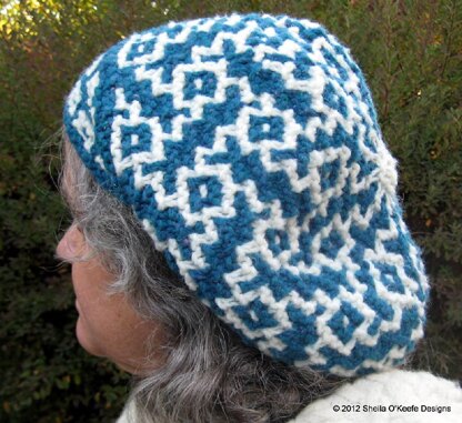 This is an easy and quick slouchy hat knit using mosaic colorwork. Mosaic is a simple technique where you only use one color each round, perfect for a first colorwork project.