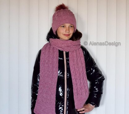 This Knitted Scarf features a Cable pattern in sizes to fit children and adults Small to Large.