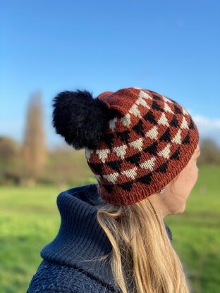 The Treola hat is a slouchy style hat featuring a geometric colourwork pattern. Written for 4 colours it’s a fun pattern to use up smaller quantities of yarn and up to 12 colours can be incorporated in the hat. The colourwork pattern is easy enough for a first colourwork project. For tips on how to read charts, finishing tips and making pompoms, visit the brixton purl website.