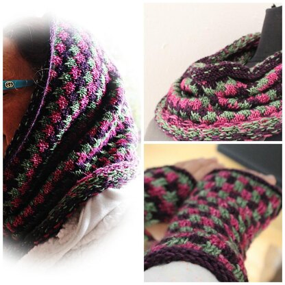 Mit dem drei Farben Cowl und den passenden Armstulpen kannst du dir ein tolles Set für den kommenden Winter stricken. Die Anleitung enthält einen Chart und das Muster strickt sich wie von selbst. Durch die dickeren Nadeln erzielst du sehr schnell ein Ergebnis.