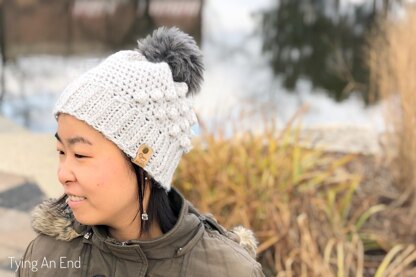 Calling out for an asymmetry lover! Triangle on one side and flat on the other side of the beanie. You don’t like asymmetry? That’s ok! You can face the triangle at the front, and you can showcase the fun detail that bobble stitch brings!