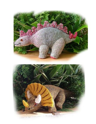Triceratops and Stegosaurus toy dinosaur knitting pattern