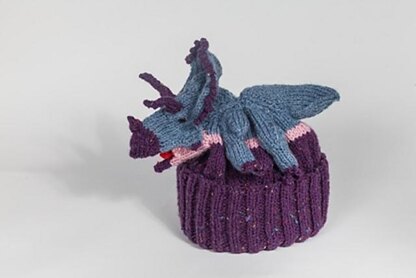 This is a cheerful beanie hat with a Triceratops on top. I have tried to give him as much anatomical accuracy as reasonable for this kind of thing, especially the number of toes...