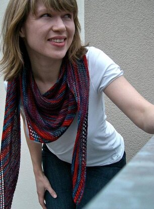 „Trillian“ is the leading female character in Douglas Adams‘ great book „The Hitchhiker‘s Guide to the Galaxy“. She‘s a mathematician and astrophysicist, and if she took up knitting, no doubt she would enjoy the unusual construction of this shawlette: You start knitting at one corner, adding wider and wider rows, thereby forming a long, narrow, slightly asymmetrical triangle. Just perfect for wrapping around your neck several times or hug your shoulders with a little warmth. Due to the shallow-but-long shape, you will get something useful to wear, no matter how much yarn you have.