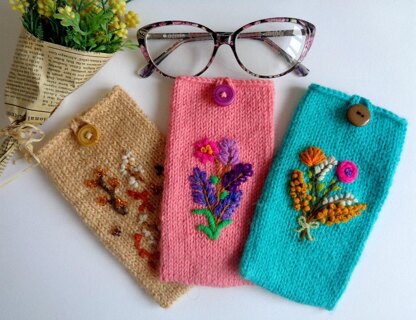 Keep safe, clean and secure your glasses all the time, with these cute Trio Glass Cases, featuring lovely embroidery on fronts, easy to make and great for all embroidery beginners, you will love these small project, perfect to take with you on your summer vacations, these are great for Christmas presents and gifts for your friends, family, co workers and children teachers! Just great idea for Gifts! and so kick to make, pattern include picture tutorial for each embroidery stitch used on each design! Enjoy