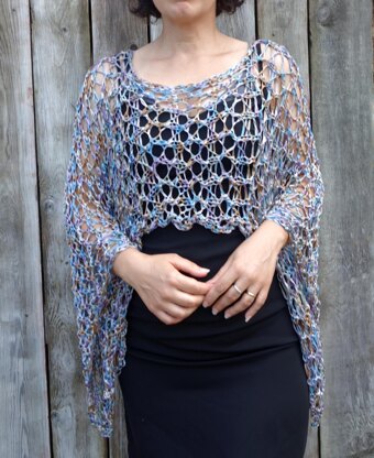 Unique design, soft, feminine, and sexy, an exquisite summer sweater or bikini cover-up. A beautiful loose knit, this design is a blend of modern and rustic style. Knit this top for yourself or as a gift for someone special! Skill level: Beginner to Intermediate. Easy to follow instructions with detailed photos to make your knitting experience an enjoyable one.