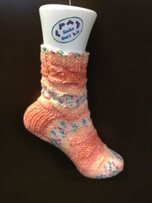 This is a knitting pattern for an ankle length sock. It is knitted in the round with DK yarn. The length of the foot can be altered to fit.