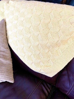 This blanket pattern features large three dimensional blocks consisting of knit and purl stitches so they appear to be stacked or tumbling. It is a completely reversible pattern with a garter stitch border that is great for any level knitter. Stroller size is perfect for wrapping around a baby while in a car seat or stroller or laying on the floor for tummy time. Baby will love the texture of the knit blocks! As baby gets older it can be used as a toddler security blanket and is great for boy or girl. By using slightly larger needles with sport weight yarn, the blanket is light and drapes easily while keeping baby warm.