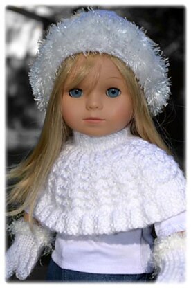 This versatile trendy capelet is a great addition to your doll's winter wardrobe and sure to become her favorite winter wear. For a finishing touch, add your favorite hat and mitts.