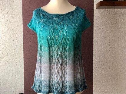 Die luftige Tunika wird in Runden von oben nach unten gestrickt. Nach unten hin wird die Tunika etwas ausgestellt, so dass sie jede Figur umschmeichelt..