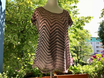 Dieses luftige Oberteil wird mit 2 verschiedenenfarbigen Farbverlaufsgarnen gehäkelt und ist damit genau das Richtige für den Sommer. Und das Beste ist: Die Anleitung ist absolut anfängertauglich. Es werden nur Luftmaschen, feste Maschen und Stäbchen gehäkelt. Die Tunika wird in einem Stück von oben nach unten gearbeitet.