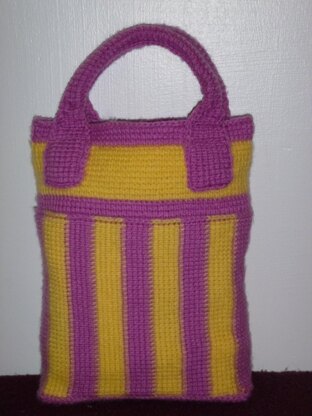 I designed this bag as a Mother's Day gift. The use of Tunisian simple stitch makes it a sturdier bag than would normally be achieved with this choice of yarn. It can carry a surprising amount, yet is not overly bulky, making it ideal for carrying a book or two plus some essentials. Perfect for lazy spring and summer days at the park or on the beach.