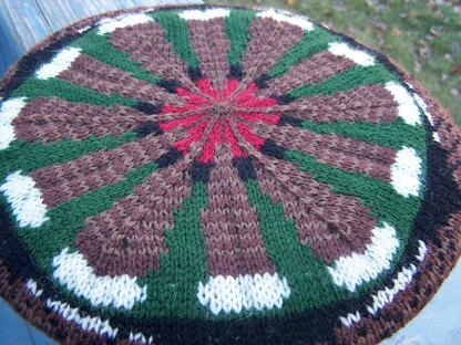 This colorful charted hat pattern makes a great first project for knitters new to stranded colorwork. The instructions are clear, concise and carefully written. The hat size can be adjusted by changing the gauge. The designer's website, www.mrsknitterdesigns, has a very helpful page of extra helpful notes.