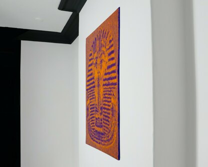 Look at the knitted picture from directly in front and you see only stripes. Look at it from the side and you will see Tutankhamun.
