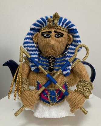 This is a knitting pattern to create a tea cosy of Tutankhamun. It will fit a standard 6-cup tea pot and is knitted in the flat on two needles.