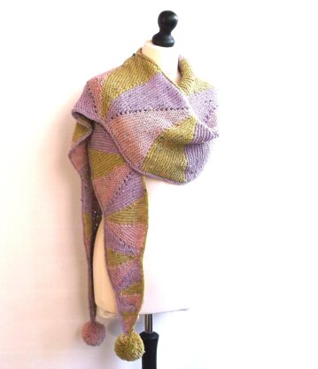 This eye catching scarf is worked in two panels which are joined together with a three needle bind off. Triangles, that are worked left then right and increase in size using short rows, create a swirl effect.