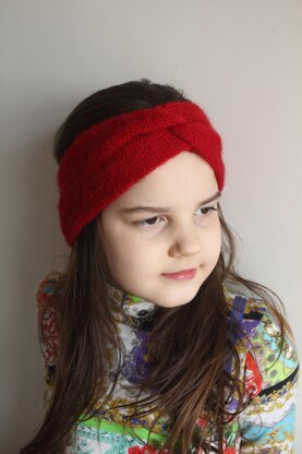 This is an extra warm headband with a central decorative twist point. Make it in a fuzzy yarn for an extra cozy look and feel.