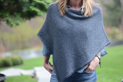 This is a simple one piece knit with minimal finishing. The yarn is important to acquire proper drape. The crochet edge can be omitted, however, it does add a bit of finishing to the piece. It can be worn 3 ways. Asymmetrical, seam down the back or inside out and seam down the front.