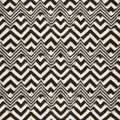 At first glance, this cowl appears to have two different sets of stripes, one thick and the other thin. From far away, the thinner stripes seem to exist on top of a layer of thick stripes, almost jumping out in space. Look closer and you will see the two stripe patterns are actually intertwined. The cowl uses short rows as part of the chevron motif to change the scale of each stripe, creating the illusion of multiple patterns.