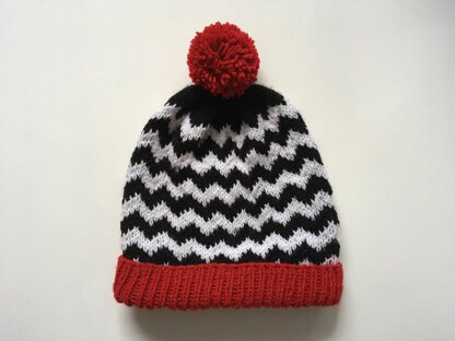 This hat is knit in the round. It is knit for a slouchy fit but if you wish to make it more fitted you can knit one less section of the chart.