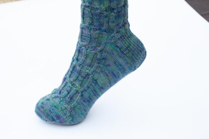 Live is full of twists and turns, hence the name of these socks is "Twist and Turn Socks". They feature a bold cable pattern on the leg and top of the foot which adds texture. They are worked top down with heel flap and turned heel.