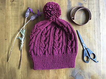 This is a pretty women’s hat pattern, mixing my love of cables combined with lace and eyelet detailing. Knit in the round using your favourite DK superfine merino yarn. This pattern is a Cabled, lace, women’s hat. One size. Written pattern. I used a Superfine Merino DK yarn. It uses about 1 and a half balls of 50g yarn, including a pompom. You will need a tape measure Stitch marker Circular needles for knitting in the round in magic loop Cable needle