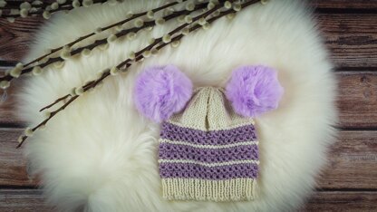 As you can see from the item photos, this baby hat also looks super cute finished with pompoms.