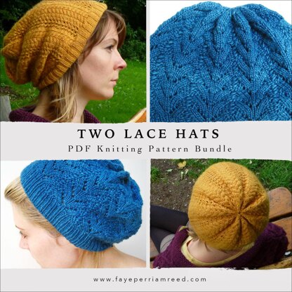 A mini knitting pattern bundle of my two best-selling hats. Both patterns have been written with instructions to work flat or in the round so they are suitable for knitters new to lace or knitting on DPNs or circular needles.