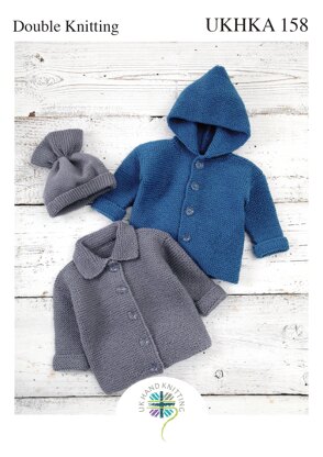 UKHKA 158 Jackets and Hat - UKHKA158pdf - Downloadable PDF est un modèle de Tricot Intermédiaire par UKHKA, disponible au format PDF téléchargeable et comprend des instructions en Anglais. Super amusant à réaliser, ce modèle pourrait être votre prochaine œuvre d'art !