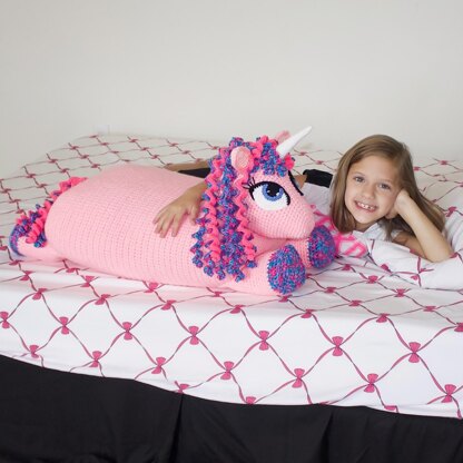 This unicorn body pillow is a must have for every little unicorn lover out there. Insert your pillow into the body and your unicorn comes to life! Perfect for sleepovers, car rides, vacations, lounging in the house, play toy and more. When its time for a wash take your pillow out and toss it in. It doesn't get any easier than that. Our unicorn body pillow is what dreams are made of. This unicorn pattern is very detailed and has pictures throughout to make things easy to understand. With these detailed instructions, even those with little crochet experience can find success creating their own masterpiece!