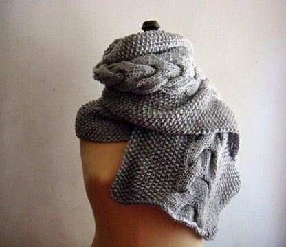 Knitted unisex scarf with cable. The pattern is written in American Terms. Difficulty: Easy/ Intermediate. Skills needed: knitting- CO, purl, knit, cable knititng, cast on. Made with worsted weight yarn and needles US 10 (6mm).