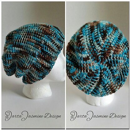 I wanted to really show the detail on the Tunisian Simple Stitch and the crown transition, so I chose a variegated yarn. This hat only uses two basic Tunisian crochet stitches; Tunisian Simple Stitch (TSS) and Tunisian Purl Stitch (TPS). It’s super easy and can be easily modified to be longer or shorter by adding or removing stitches between the brim and the crown shaping.