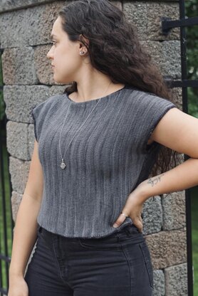 A simple, cropped tee consisting of two different colored panels that are knit sideways and seamed together. The hem, neckline, and sleeves are finished off with an i-cord to give it a neat and more unique look. This design was made on a beach over the summer. I wanted to knit a garment, but I wanted to be on auto-pilot at the same time. I wanted to unplug. The simple stockinette allows you to do just that.