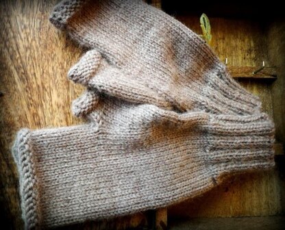 A pair of simple, classic fingerless mitts with many possible variations. Thumbs are picked up from waste yarn. A simple yet effective edging detail. The beauty of these mitts lies in their simplicity and in the pleasure of choosing a really lovely yarn.