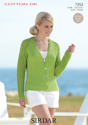 V Neck Cardigan in Sirdar Cotton DK - 7353 - Downloadable PDF