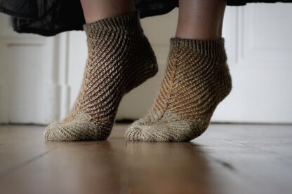 (ENG) V V socks are knit seamlessly with a toe up construction. The 3 braids can be knitted with a contrasting color or not.