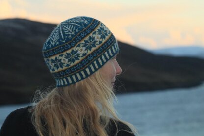 T A Robertson is a Shetland poet who wrote under the name of Vagaland. He wrote about everyday Shetland life in our native dialect in a vivid and insightful way. I was introduced to his poetry at primary school and became fascinated with names such as Peesterleetie, Terrie Mittens and Trunsher Face! The Vagaland beret is my tribute to him. It is a Fair Isle beret made using Jamieson's of Shetland Spindrift. This is a close fitting beret but a slouchier shape can be achieved by increasing the needle size to UK metric 3.5mm after the completing the ribbing. Please pay particular attention to the required tension as my knitting is tight and neat.