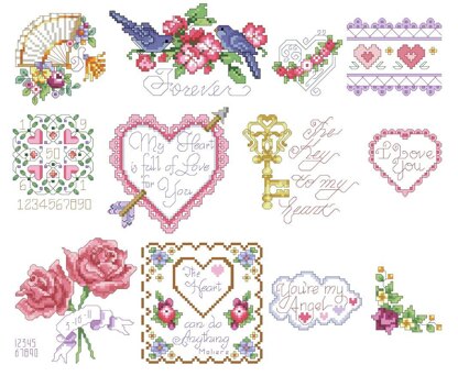 By Kooler Design Studio. Twelve beautiful ways to say I Love You are available to stitch when you use this collection of heart-felt motifs. The differing size range of the designs allows you to make a variety of projects from a very small jar lid to a beautiful greeting card for a special loved one. Valentines have never been so sweet.