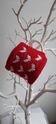 This is the first design featured in the Valentine Accessories Leaflet. This involves colourwork and stranding but you can also Swiss Darn the hearts onto the cosy and knit it up in MS first if you prefer.