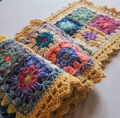 MEASUREMENTS Finished scarf measures 24 x 180cm / 9½ x 71in Each motif measures 8 x 8cm / 3¼ x 3¼in