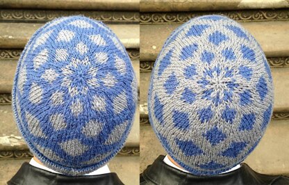 Vanishing Point is an incredibly warm and cosy hat, worked with the double-knitting technique, creating a hat that is twice as thick, twice as snuggly, and twice the fun of a normal knitted hat.