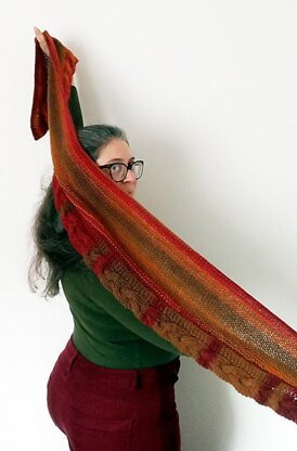 I have been playing around with the idea of a cabled scarf. Here I have used reversible cables and garter stitch for a piece that is apparently easy but uses a number of advanced techniques. The stole starts with a provisional cast on, then the bottom border is knitted with a plump reversible cable. When the border is long enough, stitches are picked up along the garter edge of the border, and the cast on. The corners are then rounded with short rows and the center is filled with garter stitch, while the ribbing is continued along the two short sides. The stole is bound off in I-cord. The pattern was created with VAranasi by Katia, substitute yarns are listed here.